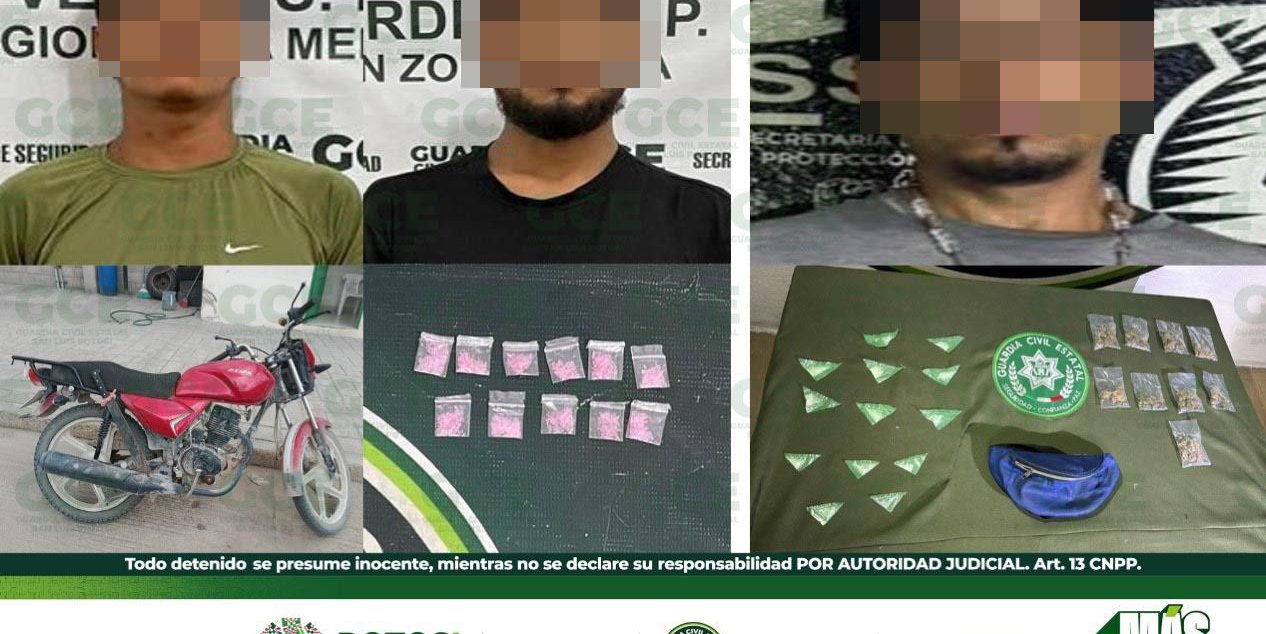 S.L.P.- Derivado del Plan Integral de Seguridad que tiene como objetivo el combate sin tregua a la delincuencia y al narcomenudeo, en las últimas 24 horas, agentes de la Guardia Civil Estatal (GCE) detectaron y detuvieron a cuatro presuntos vendedores de droga de grupos delincuenciales, asegurando un total de 55 dosis de narcóticos.