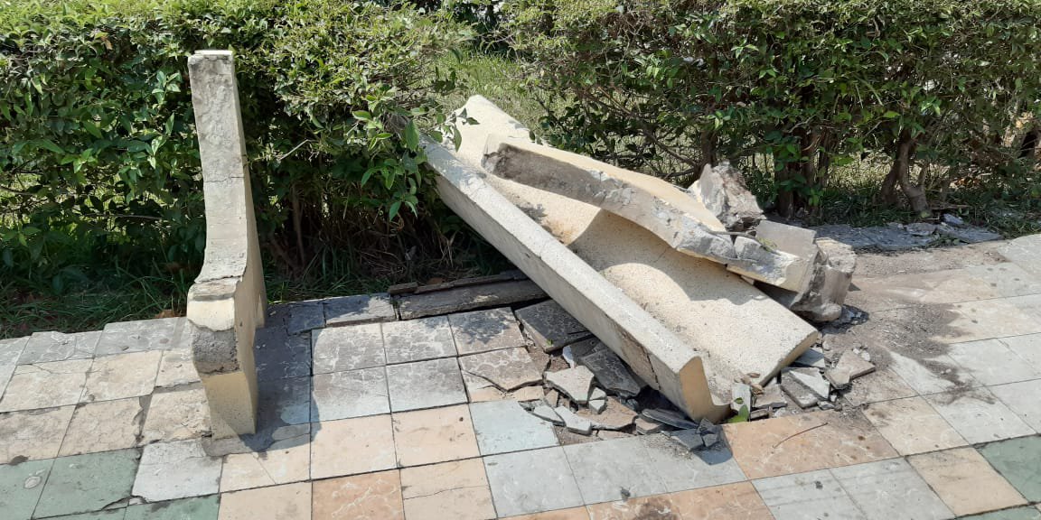 Vecinos del sector señalaron que un vehículo, propiedad de “juniors” de la ciudad subieron a jardín y a su paso destruyeron la banca de concreto.