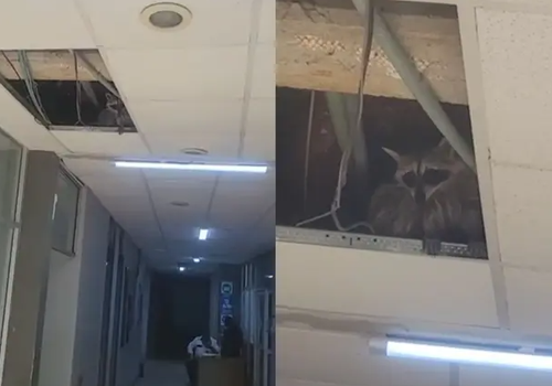 Capturan un Mapache en Clínica Hospital del ISSSTE en Reynosa; Estaba Entre los Plafones.