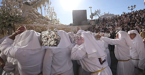 La tribuna que eleva a la Virgen del Rocío al cielo