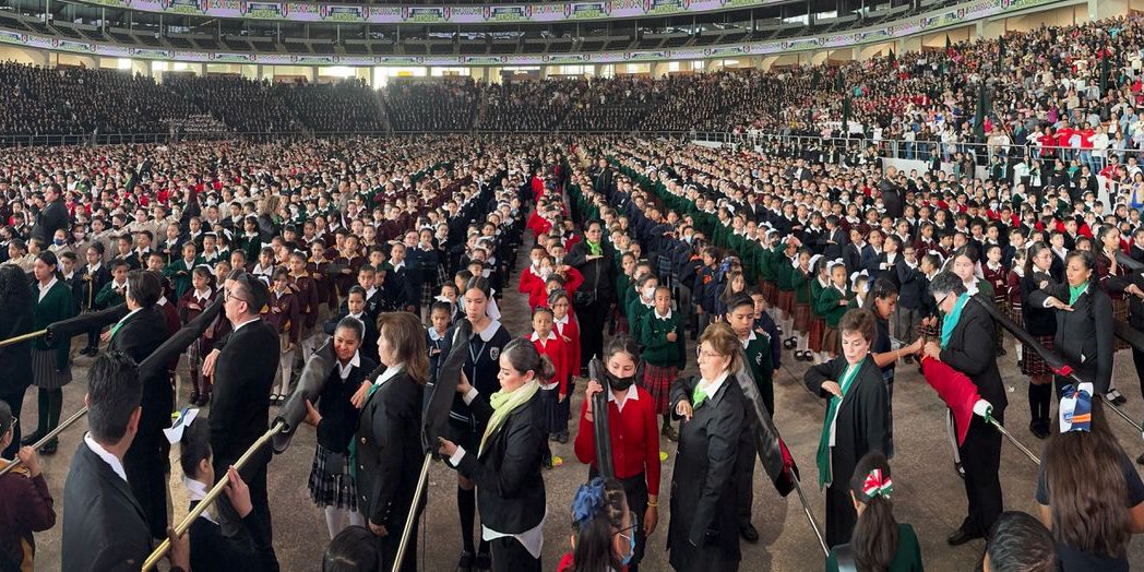 Participaron 128 planteles oficiales y particulares, con la asistencia de alrededor de 10 mil personas entre estudiantes, docentes y familias, además de la Orquesta Sinfónica del Gobierno del Estado. La coordinación de la Guardia Civil Estatal (GCE) y la Coordinación Estatal de Protección Civil (CEPC) garantizó el bienestar de los asistentes en una jornada que respalda el cambio que se vive y se siente, reforzando la educación cívica.