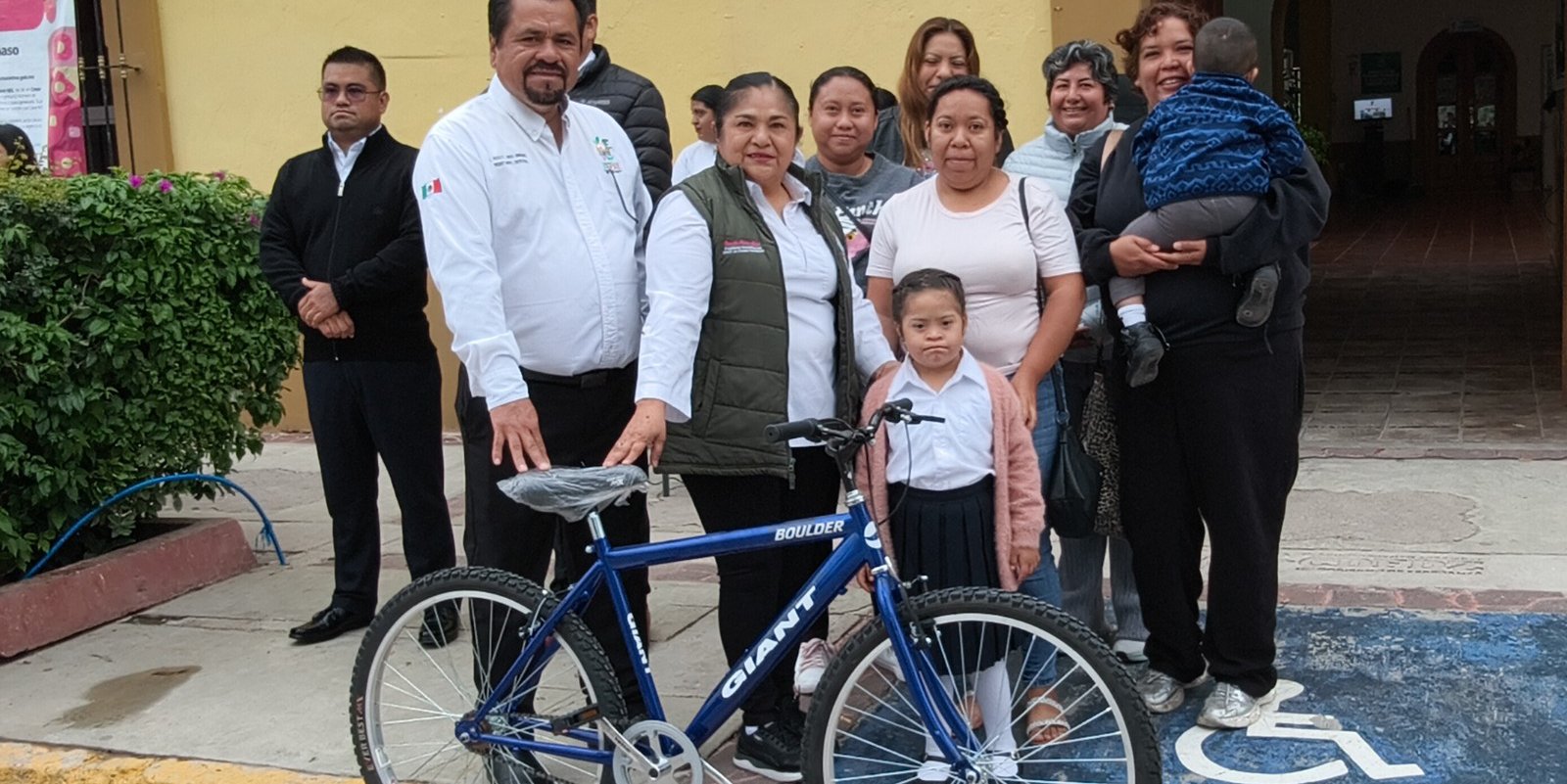 En el marco de los honores a la bandera, el alcalde de Ciudad Fernández, Rodolfo Loredo Hernández, en coordinación con la presidenta del Sistema DIF Municipal Rosaura Tapia Ponce, realizó la entrega de una bicicleta a la escuela Hellen Keller, como parte del apoyo a sus actividades de recaudación de fondos en beneficio de la comunidad educativa.