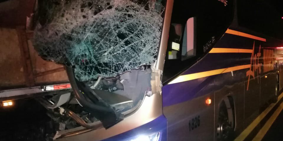 Dos personas lesionadas de gravedad dejó aparatoso choque de un autobús y un trailer en la carretera de cuota Rayón-Ciudad Valles la noche de este lunes