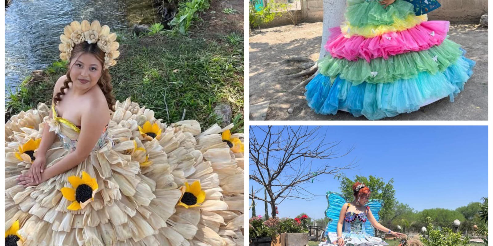 Como parte de las actividades previas, las jóvenes realizaron una sesión fotográfica en la que demostraron su creatividad al confeccionar vestuarios con material reciclado. Cada una apostó por un estilo distinto: una utilizó papel crepé, otra elaboró su diseño con hojas de tamal, mientras que otra empleó vasos de unicel, resaltando el mensaje de conciencia ambiental.