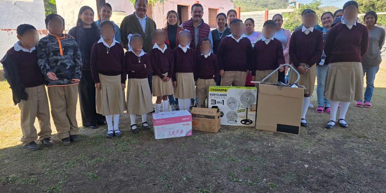 Entre los insumos otorgados se encuentran una bomba de agua, ventiladores y útiles de oficina, con el objetivo de mejorar las condiciones del plantel y fortalecer el entorno educativo para alumnos y docentes.